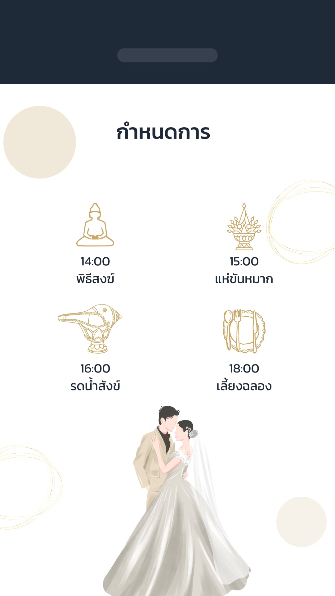 ระบบ RSVP งานแต่งออนไลน์ช่วยให้แขกตอบรับเข้าร่วมงานผ่านการ์ดเชิญงานแต่งออนไลน์ได้สะดวก เจ้าบ่าวเจ้าสาวสามารถดูจำนวนแขกที่ตอบรับแบบเรียลไทม์ ไม่ต้องโทรถามทีละคน ข้อมูลทั้งหมดถูกรวบรวมไว้ในหน้า Dashboard ให้จัดการได้ง่าย